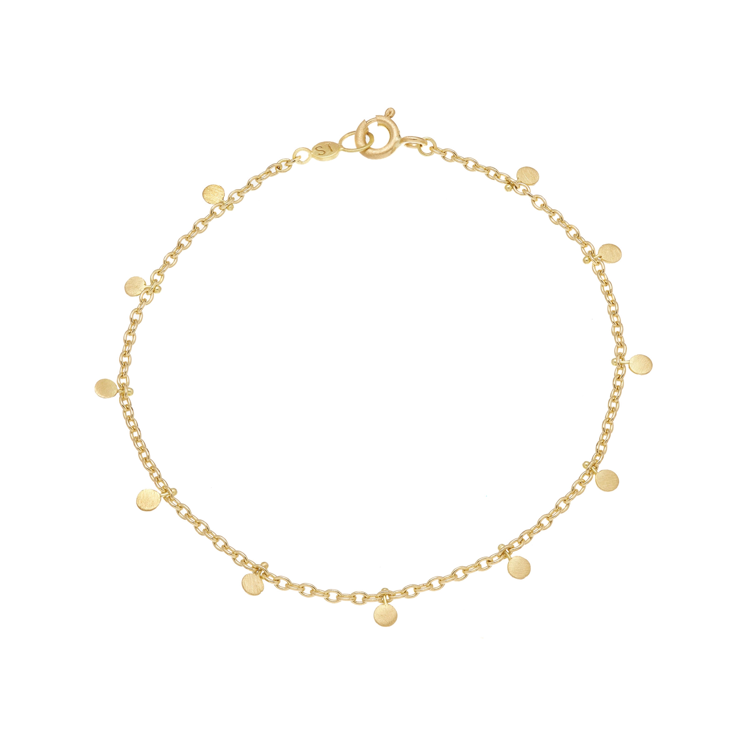 Evenly spaced handmade gold dots sitting along a fine gold chain.