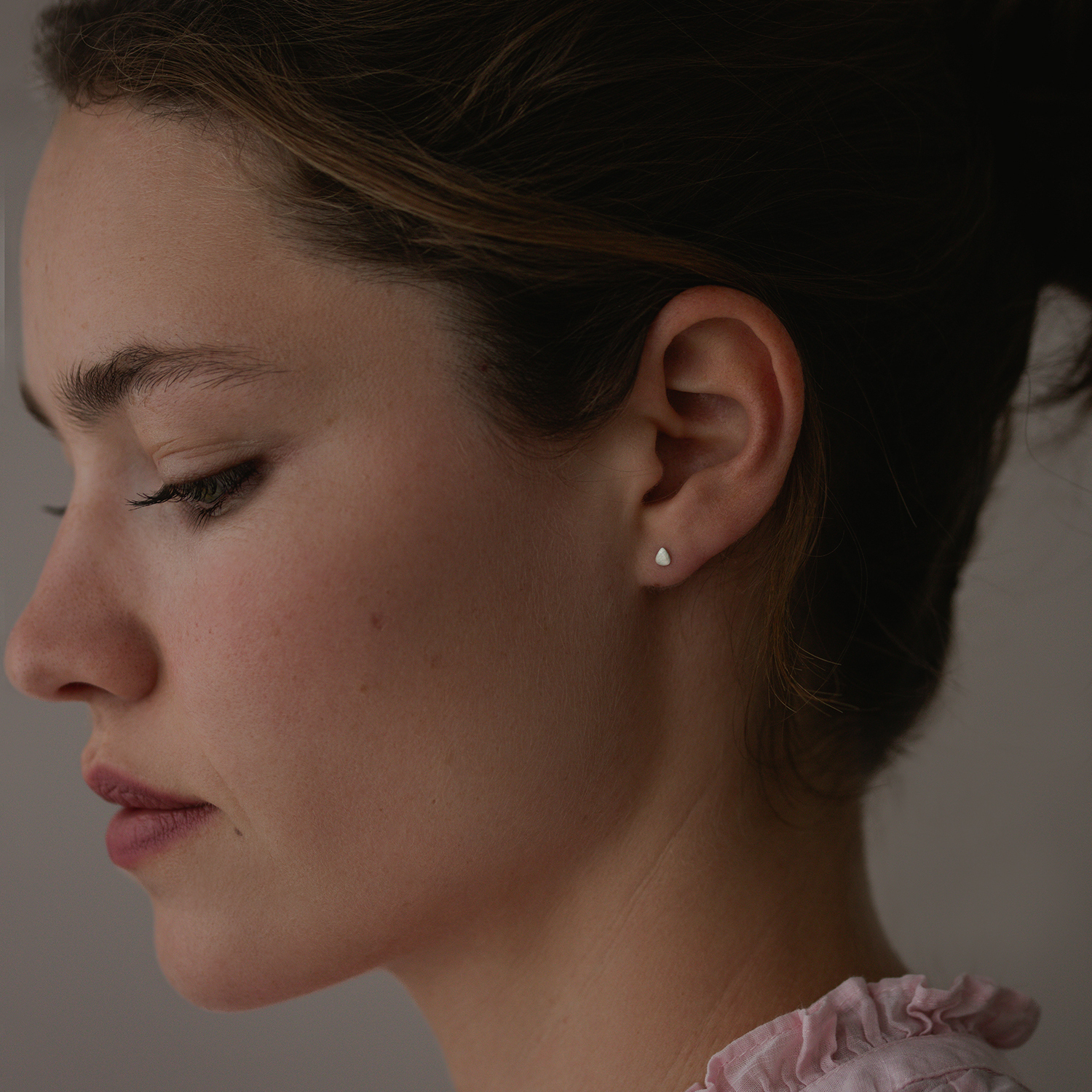 A pair of tiny silver seed studs.